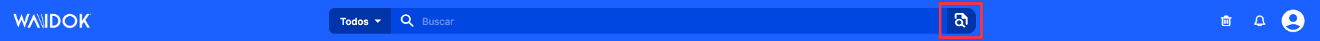 Waidok offers two main types of search:free text search by words and advanced search by metadata. Both allow you to filter by entities (documents, files, tasks) using a drop-down menu next to the top bar.