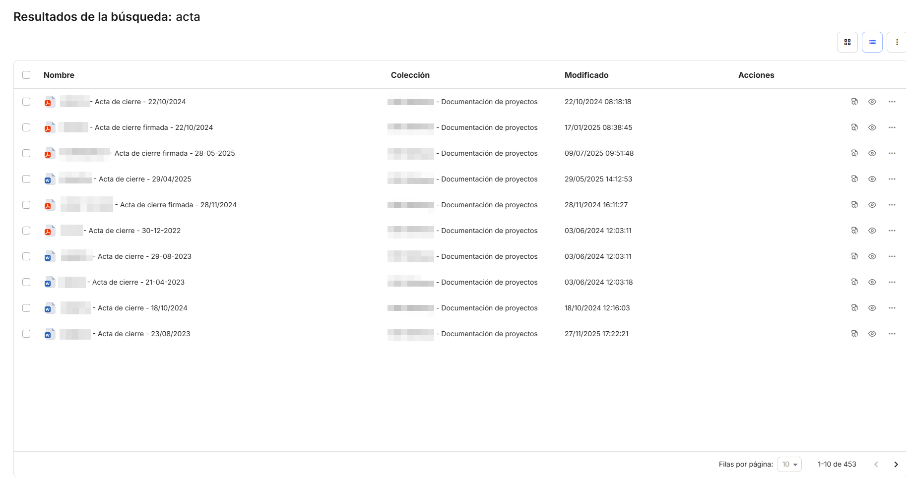 From there, we can access the search results window, where we will have all the options described in the previous sections on working with documents.